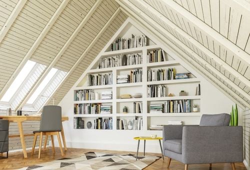 Créez une véritable bibliothèque murale sur mesure qui s’adapte à votre mur, même en sous-pente ou niches.